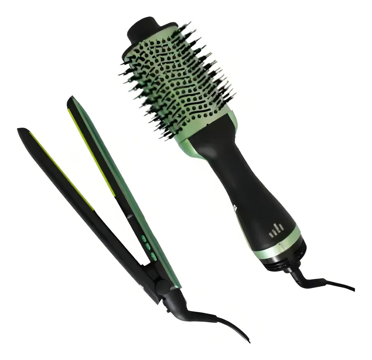 Cepillo Secador Remilngton: Este es un cepillo que combina las funciones de secador de pelo y cepillo redondo en un solo dispositivo. Es ideal para secar y peinar el cabello al mismo tiempo, lo que puede reducir significativamente el tiempo necesario para arreglarlo. El cepillo secador de Remilngton suele tener cerdas de nylon o cerámica que ayudan a desenredar el cabello y a distribuir el calor de manera uniforme para un secado rápido y un peinado suave y voluminoso.