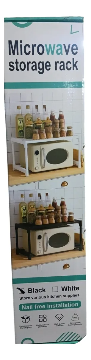 Este estante organizador de un nivel está diseñado especialmente para colocar el microondas y otros utensilios de cocina, brindando comodidad y mayor aprovechamiento del espacio. Su estructura robusta permite soportar el peso del electrodoméstico mientras en la parte superior puedes organizar especias, recipientes o accesorios de uso diario. Es una solución moderna y funcional que aporta orden al hogar.