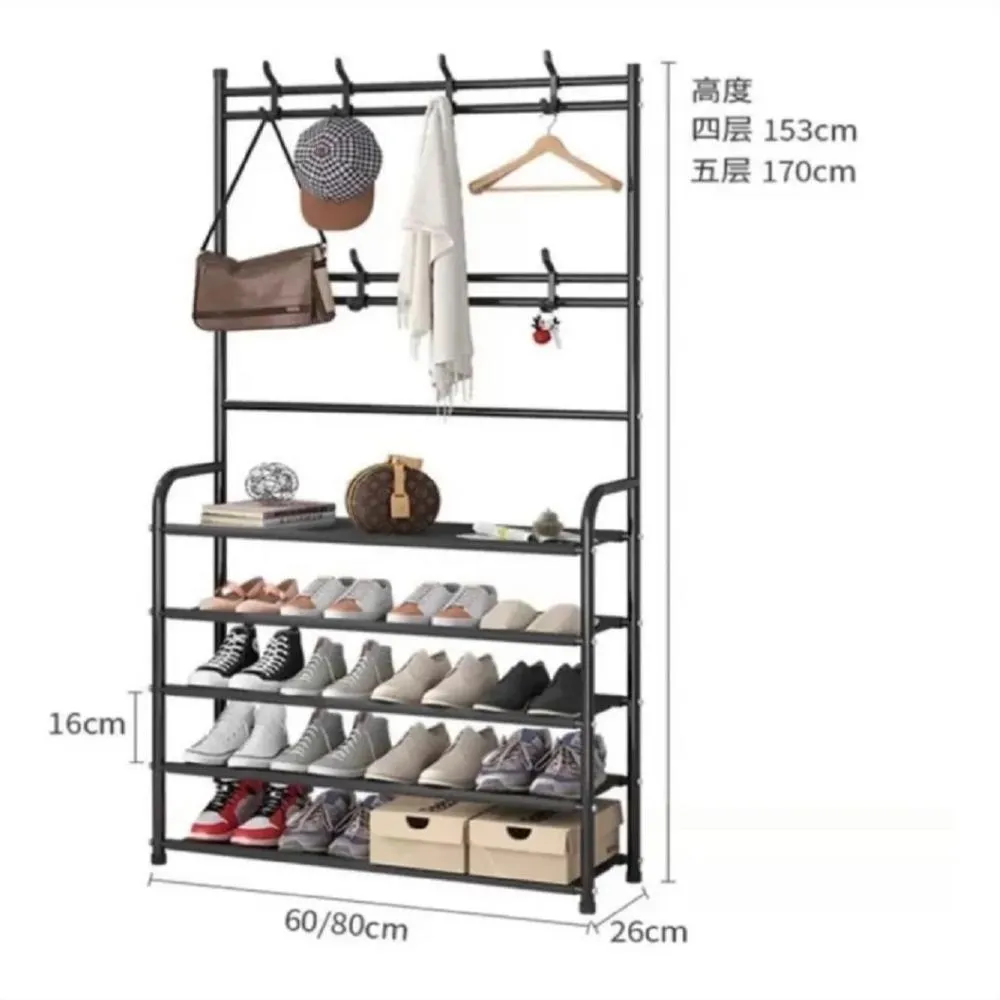 Mueble Organizador De Ropa Zapatera Perchero 4 Niveles Color Negro
